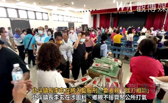 ▲北斗鎮長李玄在因貪污圖利罪被判刑1年10月、褫奪公權2年,將入監服刑,解職前夕,李玄在在公所開惜別會,李玄在要鄉親「拔刀相助」。