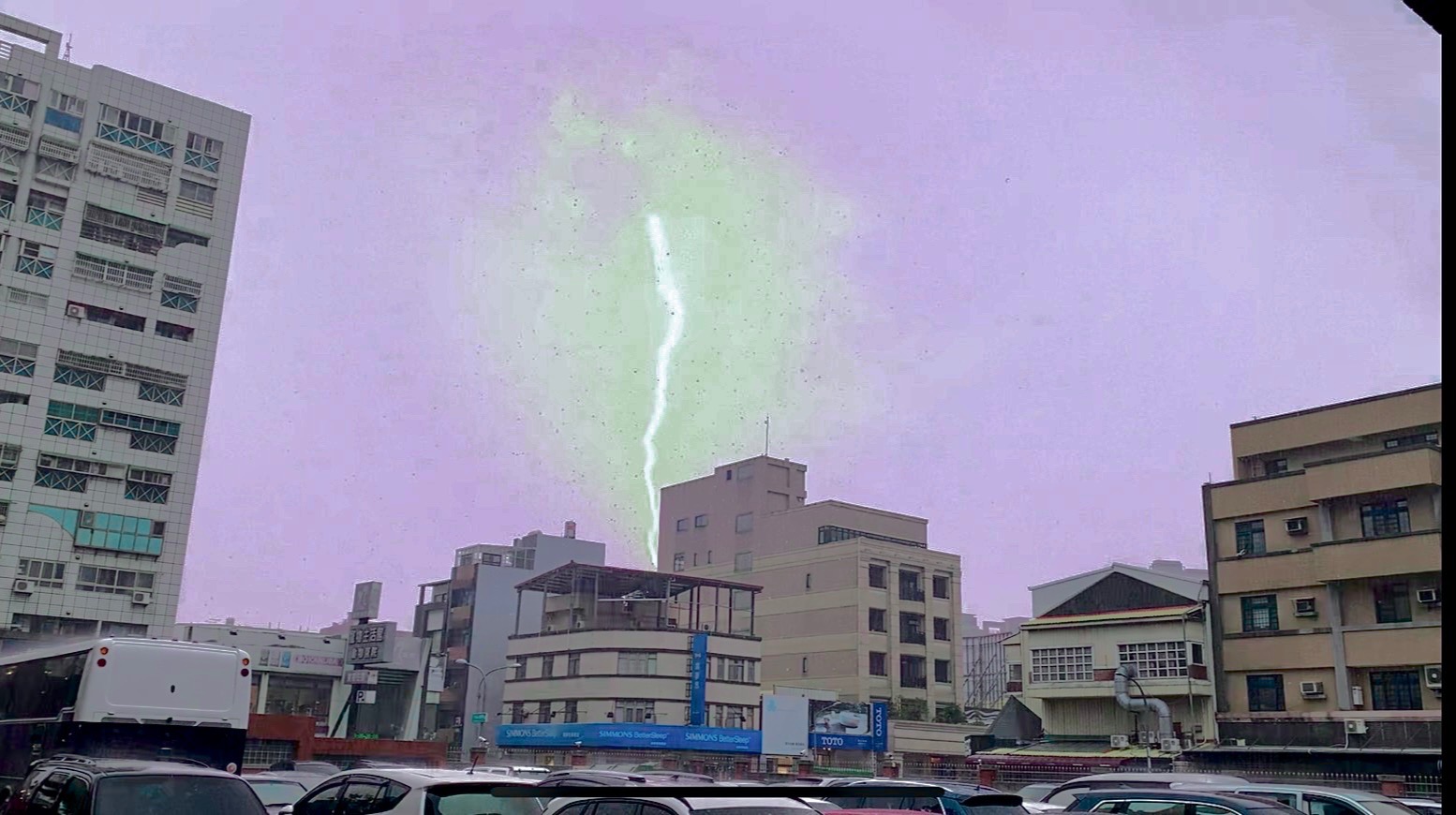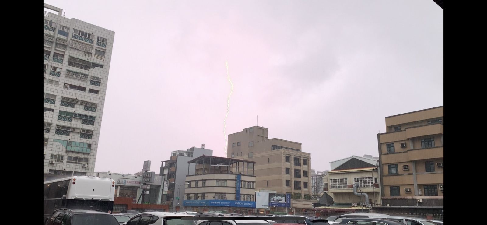 大雷雨來襲,彰化市下午雷聲大作,民眾拍下超大閃電從天直劈而下的畫面,驚呼「雷神降臨!」氣象局並強調,旺盛發展的對流常伴隨打雷、閃電與劇烈降雨,民眾應慎防劇烈降雨、雷擊,低窪地區慎防淹水、低能見度。