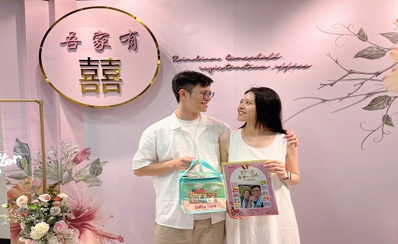 另一對新人劉小姐與蕭先生表示,雙方在教會認識,因信仰相同而結緣,蕭先生外表雖然看起來是個有距離感的潮男,但其實男方個性心思細膩,為了給劉小姐一場浪漫的求婚,自己將交往過程剪輯成浪漫的片段製作了求婚影片。拿到專屬的520結婚愛情郵票,還收到新店戶所額外給新人的「柴語錄保溫袋」,讓新人保存愛情溫度。
