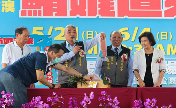 今天活動特地邀請「永豐活海鮮餐廳」、「三多屋關係企業」及「蘇澳區漁會家政班」等海鮮料理商家達人共同參與,現場安排專業師傅進行黑鮪魚切割秀,並由蘇澳區漁會陳春生總幹事介紹黑鮪魚,同時提供美味的繽紛黑鮪魚沙拉、黑鮪魚鮮粥及酥炸魚柳供民眾試吃,還有黑鮪魚生魚片丼飯及照燒黑鮪魚丼飯各100份的販售,讓民眾知道漁產的美味,鼓勵民眾多多選購國內生產的優質水產品。