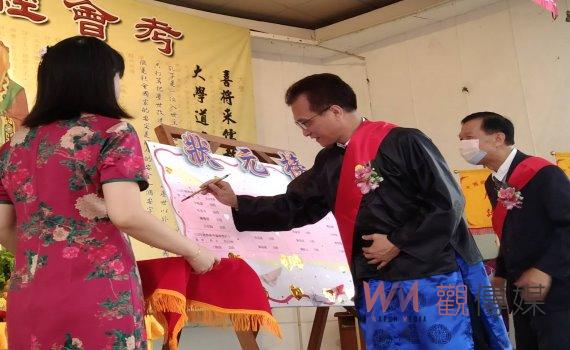 ▲彰化縣讀經學會舉行「彰化縣112年第二十四屆經典會考頒獎典禮」,報名相當踴躍,共計684名考生,592名考生榮獲狀元,由副縣長林田富圈點狀元榜。