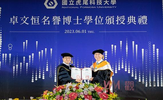 (觀傳媒雲林新聞)【記者洪佳伶/雲林報導】國立虎尾科技大學於今(1) 日舉行「卓文恒名譽博士學位頒授典禮」,虎科大名譽博士卓文恒為上銀科技股份有限公司董事長,教育部政務次長林明裕、虎科大創校校長張天津、台灣工具機暨零組件工業同業公會副理事長戴雲錦等產官學界先進齊聚一堂,獻上祝賀。