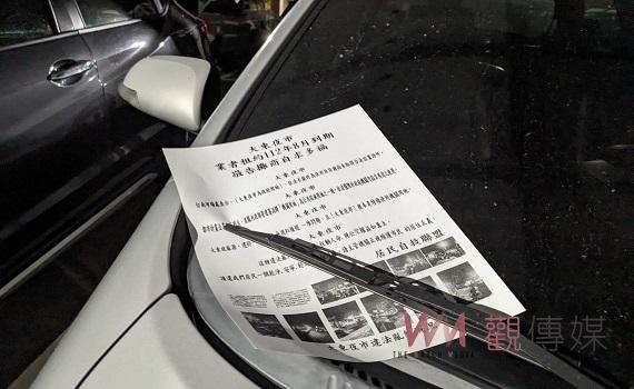 (觀傳媒台南新聞)【記者陳彥霖/台南報導】昨(6)日晚間,台南市政府前南島路停車場及周邊停放的車輛,前擋風玻璃均被夾上傳單,內容指東區大東夜市將於112年8月到期,要攤商們要自求多福,傳單署名「居民自救聯盟」。台南市政府回應駁斥,「錯誤資訊,與事實不符」。