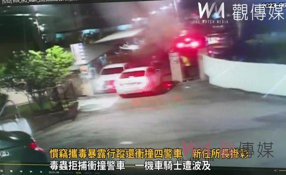 警方指出,41歲劉姓慣竊開著偷來的Lexus汽車到員林市找朋友,警方接獲線報在附近埋伏圍捕,劉嫌見狀竟加足油門衝撞警車,造成4部警車毀損,經查劉嫌不僅車子是偷來的,就連車牌也是偷另一部車的,警方在劉嫌車上發現作案工具與多包毒品。