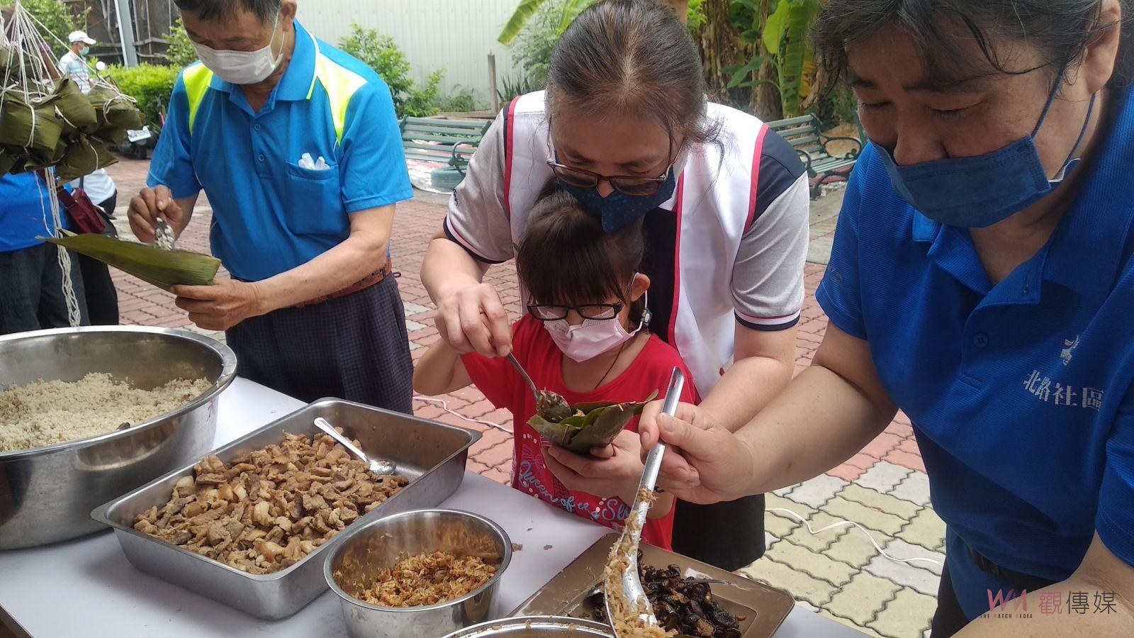 (觀傳媒彰化新聞)【記者陳雅芳/彰化報導】端午節前夕!彰化家扶中心與田中鎮北路社區發展協會舉辦「田粽傳愛慶端午~家扶親子包粽趣」活動,今(11)日邀請家扶扶助家庭20戶親子,田中展愛志工隊與北路社區志工約100人參與,當中有包粽經驗老到的阿嬤,也有是第一次體驗包粽子的媽媽、爸爸和小孩,也有來自越南和中國的新住民媽媽,活動現場非常熱鬧也充滿歡笑聲。