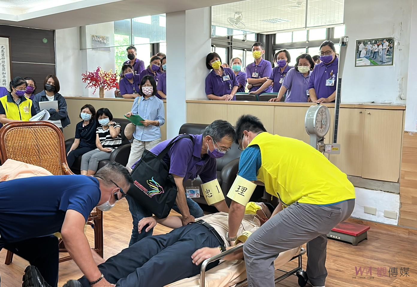 演練的過程中,榮家家主任呂德義帶領工作人員發揮集體智慧作處置、討論及修正,期使第一線同仁能在最短的時間內化解「危機」,降低傷害,提供長輩優質照護環境。