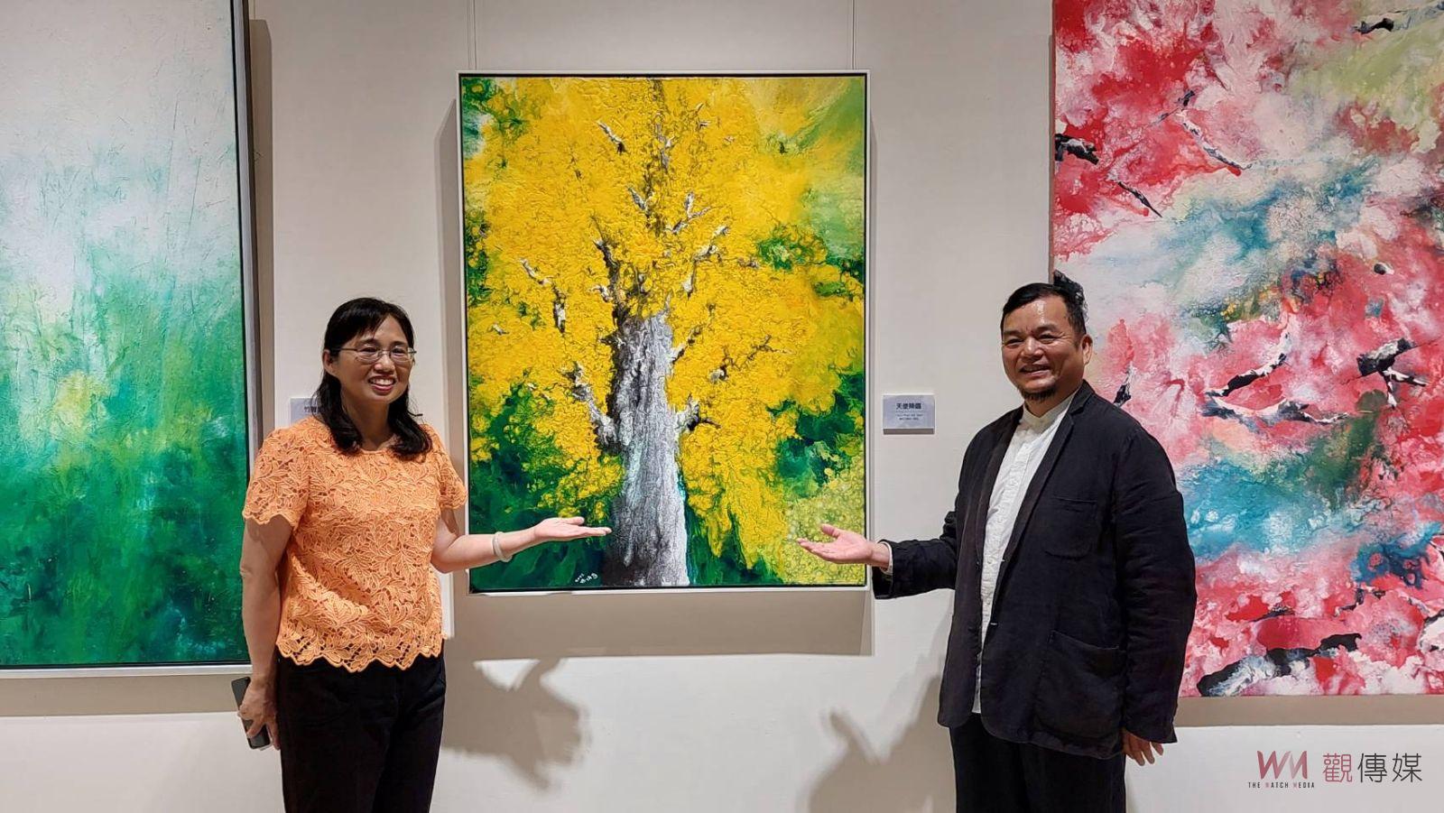 陳炳臣運用獨特傾倒顏料的作畫方式,讓他不用持畫筆,也能展現古老神木的生命力量,曾是導演和演員的他,多才多藝,如今成為專職畫家,盼望用顏色和線條展現大自然的無限魅力。