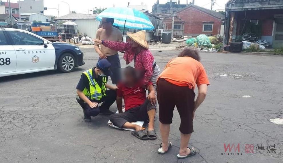 (觀傳媒雲林新聞)【記者蘇榮泉/雲林報導】天氣炎熱,67歲老翁外出購物,一時血糖降低跌坐在路上,熱心路人立即為他撐傘遮陽,恰巧遇到巡邏的警察經過及時救援,老翁家人感謝員警在危急之際出現,讓老翁保住一命。