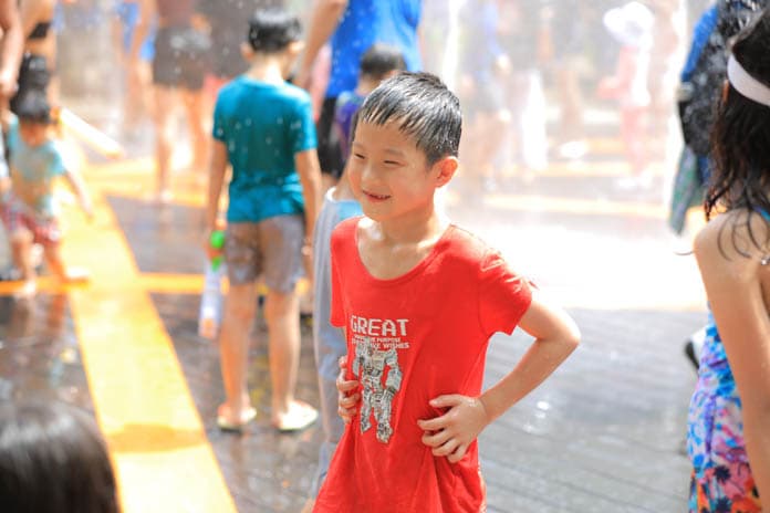 因疫情睽違兩年的基隆親水季活動,7月1日在暖暖親水公園熱鬧開幕,基隆市長謝國樑與大小朋友盡情玩樂,並表示將盤點其他適合的公園來設置親水設施,提供家長跟孩子們能在盛夏享受清涼。
