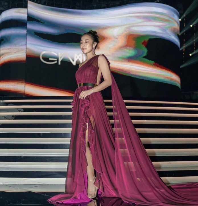 ▲第34屆金曲獎! Francis Tsai法蘭以一襲紫色高訂單肩禮服,耳上配戴價值上百萬的CARAT WANG頂級訂製珠寶「秦帝國-焠鍊思緒」系列「自立骨也」彩寶耳環,氣質出眾。