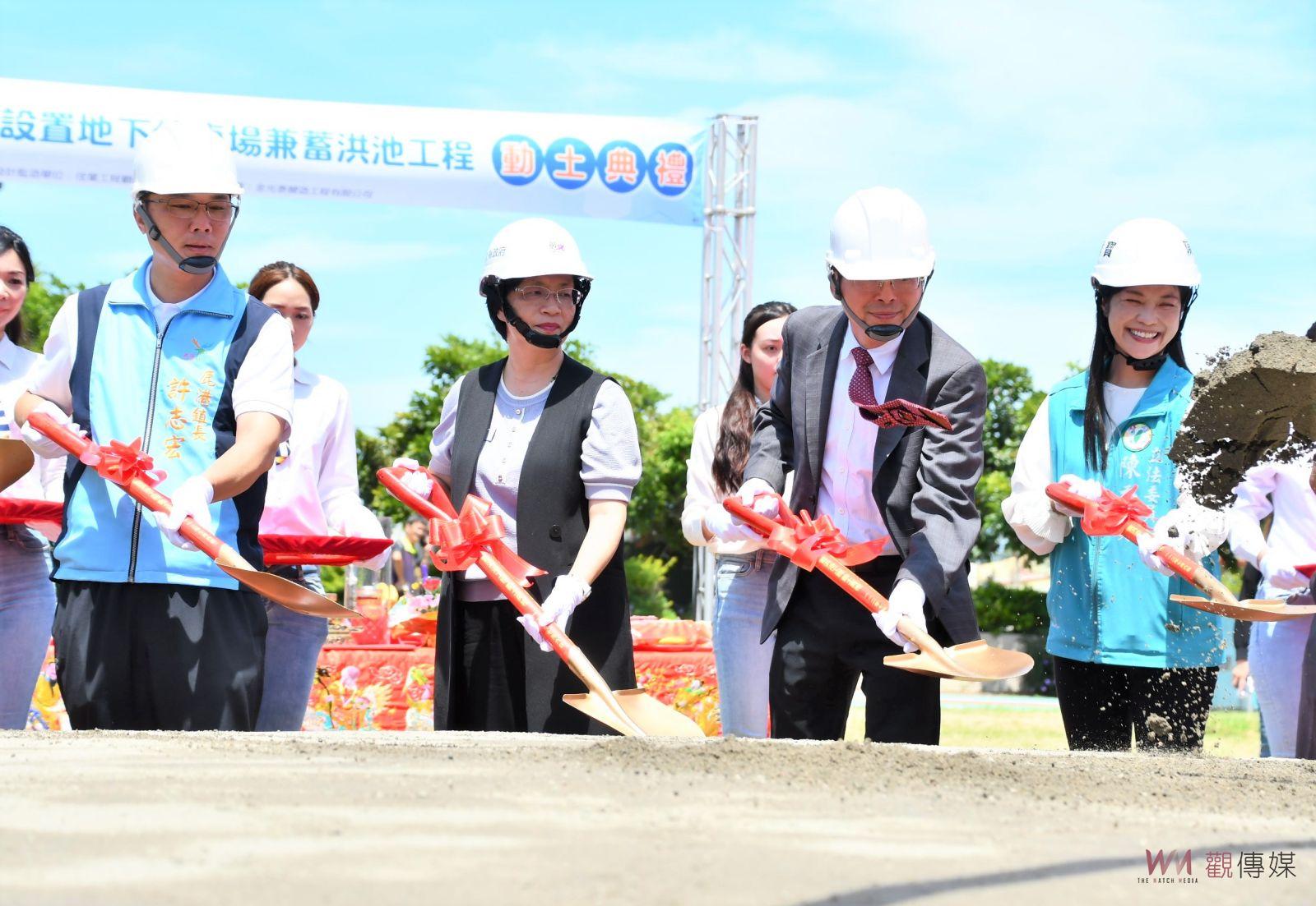 ▲彰化縣政府於洛津國小操場下施作共構共建的蓄洪池、停車場工程,彰化縣長王惠美主持動土典禮,平時為停車場,遇豪雨則改為蓄洪。