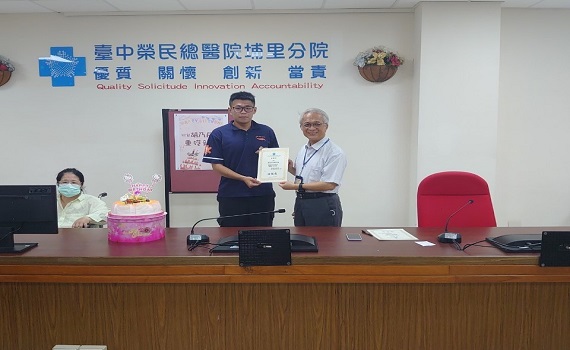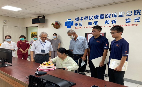 之後,她被轉送至臺中榮總埔里分院,心臟科王惠民主任進行了緊急心導管檢查,并成功植入了心臟植入性整律電擊器(implantable cardioverter defibrillator),以預防未來再次發生心律不整時可以立即進行體內電擊。這位病人已順利治療出院。院方於病人出院前舉辦了一場盛大的慶祝活動,為這位病人和她的家人慶祝重生。同時,院方還邀請了當時救護車上埔里地理中心埤消防隊員──許救護技術員及蔡救護技術員前來祝賀,並向這兩位救護技術員頒發了感謝狀,以表達對他們的感激之情。