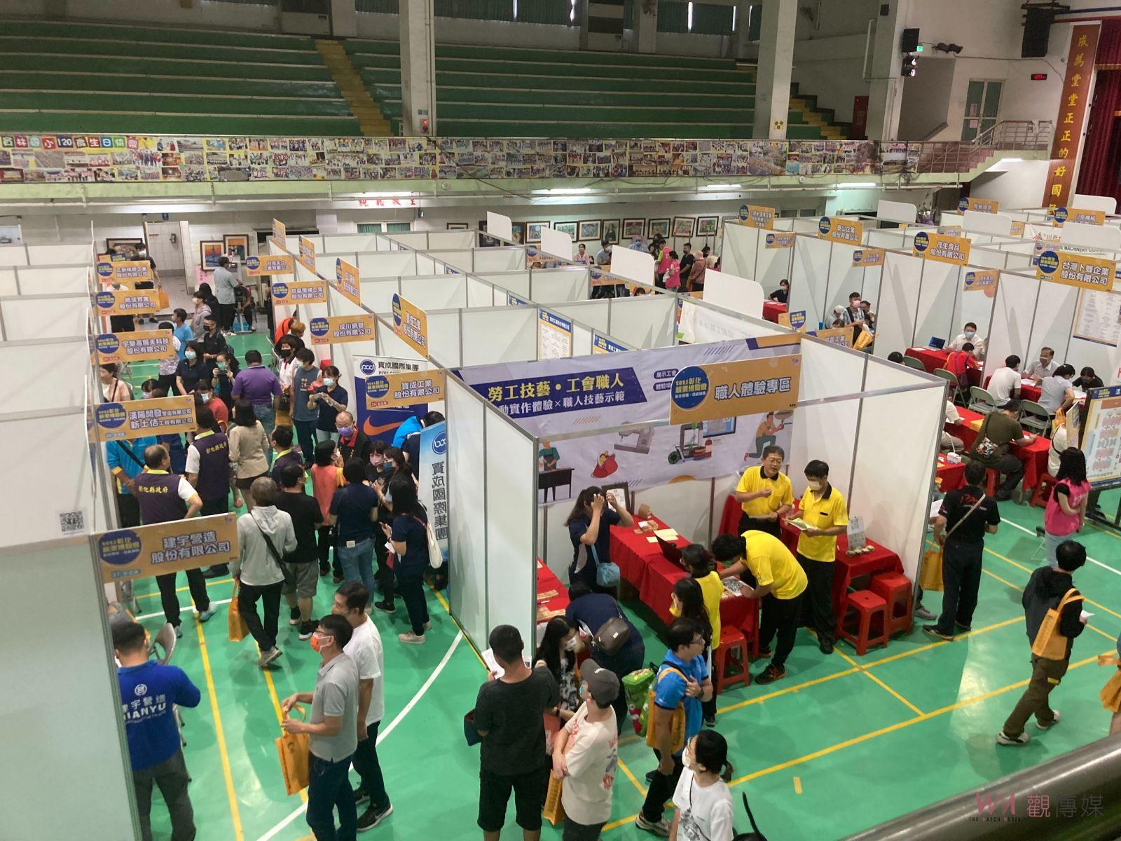 勞工處長何俊昇說,這是今年暑假第一場就業博覽會,總共開出1000多個工作機會,目前台灣的服務業、營建業、製造業景氣冷熱有別,服務業和營建業非常缺工,電子和傳統製造業較去年緩和許多。