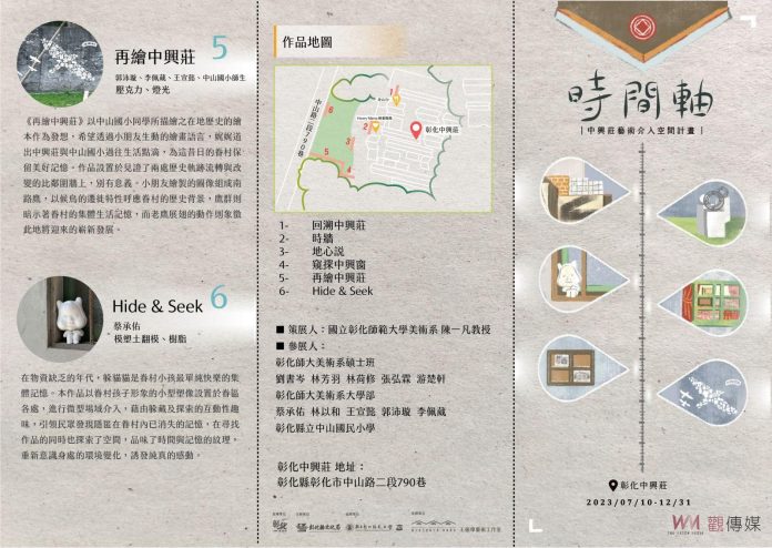 ▲彰化縣政府邀請國立彰化師範大學美術系師學生辦理「時間軸」-中興莊藝術介入空間計畫作品展覽,共展出6件作品,邀請大家來走入中興莊時光記憶。