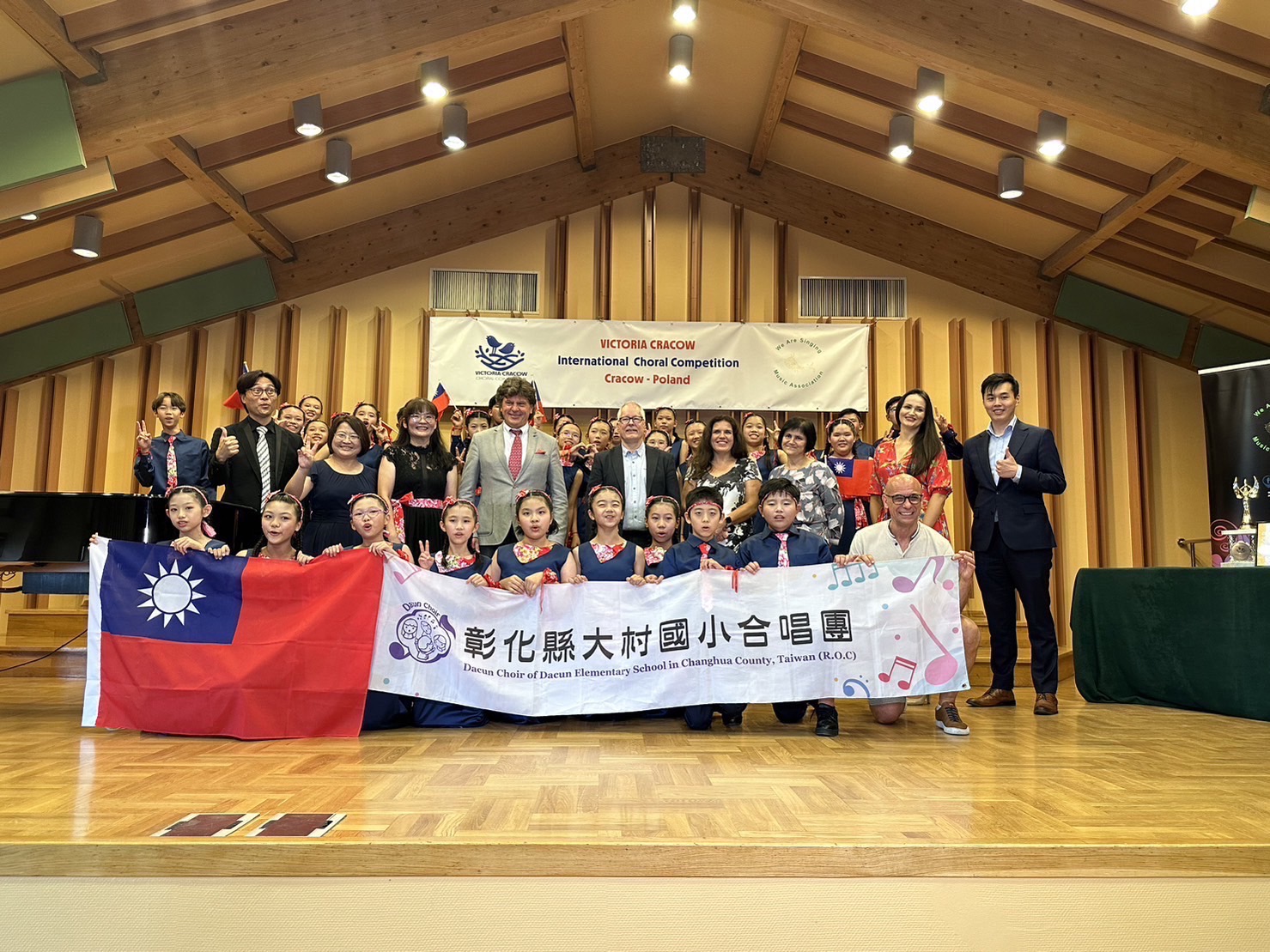 ▲彰化縣大村國小合唱團到波蘭參加克拉克夫國際合唱大賽,傳出「雙金入袋」捷報,榮獲比賽唯一金獎和大會最大獎。