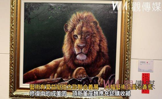 其中,陳永聰藝術家的作品《金獅獻瑞》,感謝由泰陽橡膠廠股份有限公司陳新民董事長認購;還有趙宗冠藝術大師的作品《修復中的成美園》感謝頂新國際集團魏應充董事長認購收藏。