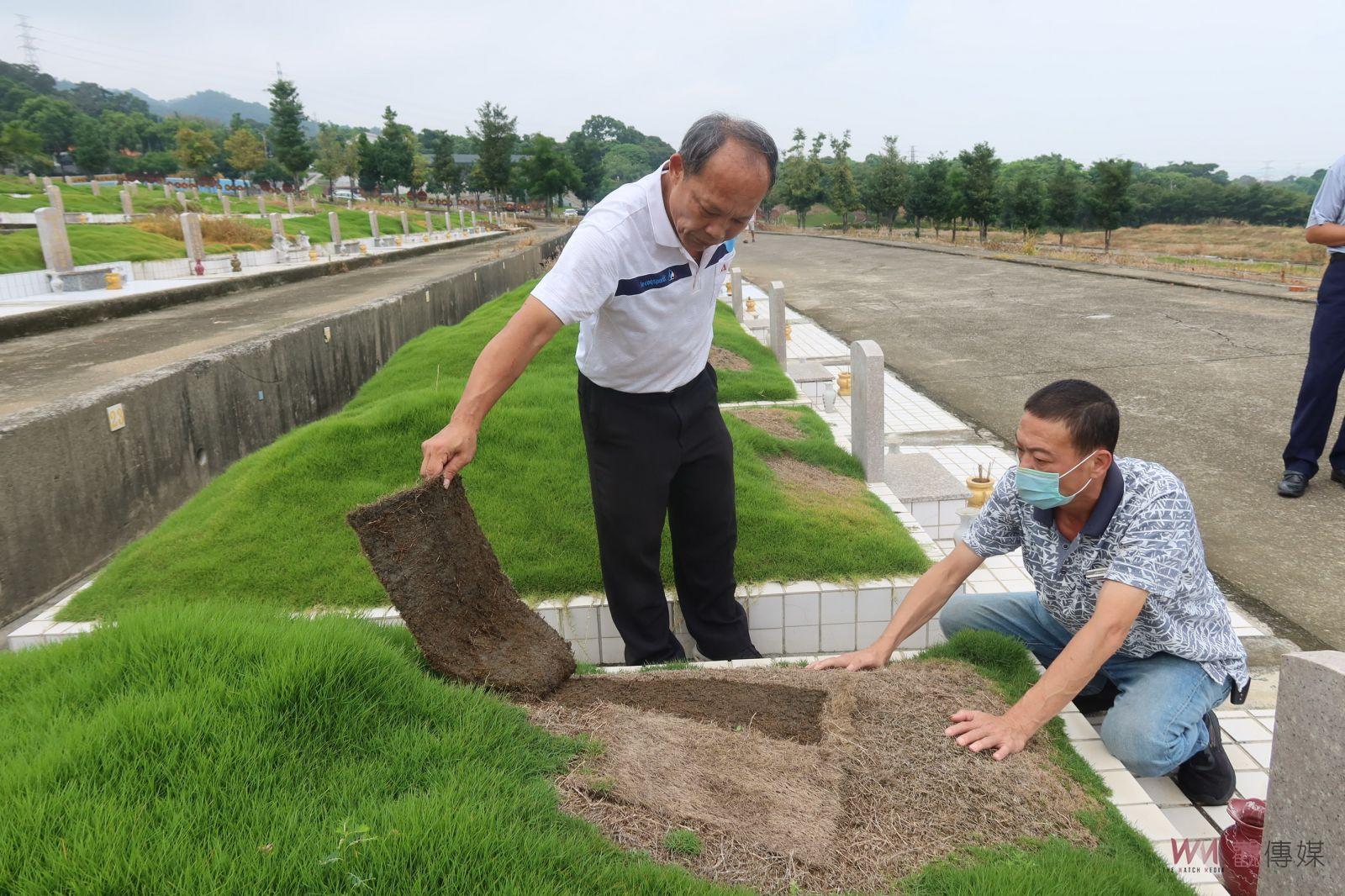 生命禮儀管理所長劉世平表示,經現場勘查確認應該是最近天氣炎熱,造成草皮乾枯,維護廠商有補植的動作,但可能維護不當又再次乾枯,後續將會要求維護廠商加強看管,避免造成民眾不必要的誤會。