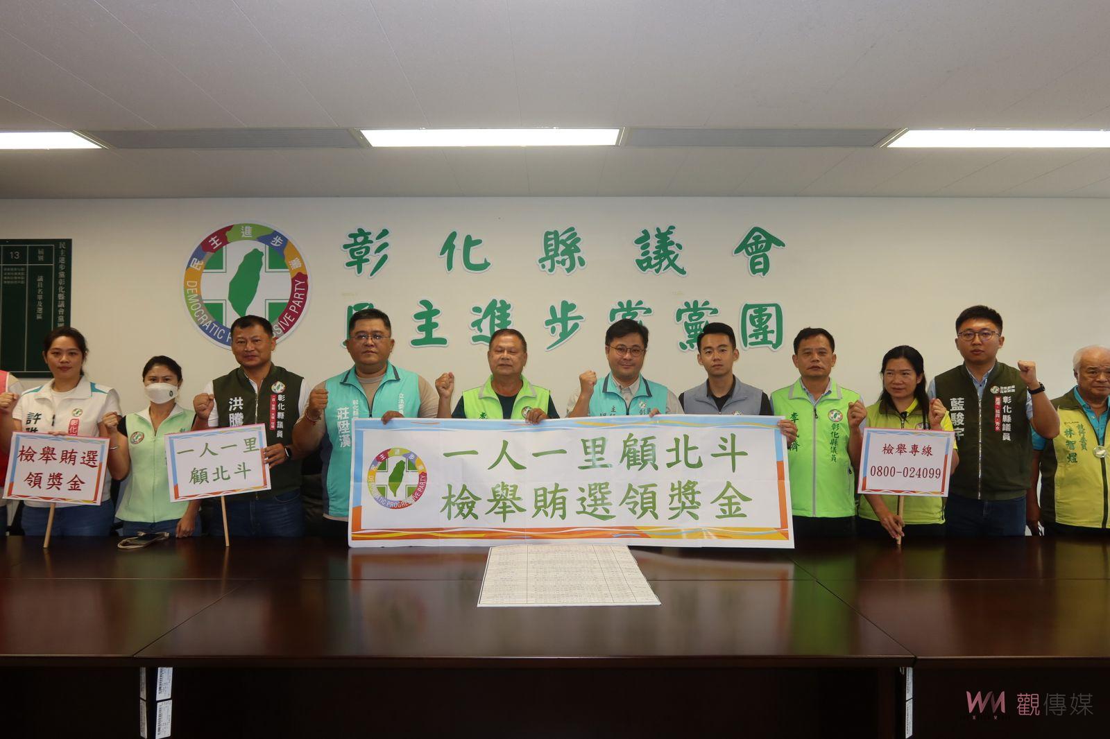 (觀傳媒彰化新聞)【記者陳雅芳/彰化報導】總統大選前哨戰!彰化縣北斗鎮長補選即將在8月5日投票,由民進黨縣議會黨團、民進黨彰化縣黨部,今(31)日在彰化縣議會民進黨團辦公室召開「乾淨選舉、一人一里顧北斗、全民一起來」記者會,黨團總召李俊諭說,16名黨籍議員將分配至投開票所,對選舉進行監督全面防範賄選、暴力介入選舉。