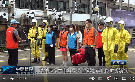 (Veetv中都新聞)【記者謝佩吟/台中報導】為推廣校園災害防救觀念,台中市政府環保局昨(3)日與東海大學共同辦理「112年度台中市毒性化學物質災害防救疏散避難演練」,由東海大學農業暨健康學院操演地震發生的複合型災害,共計動員14個單位、103人次參與此次演練,演練作業逼真確實。