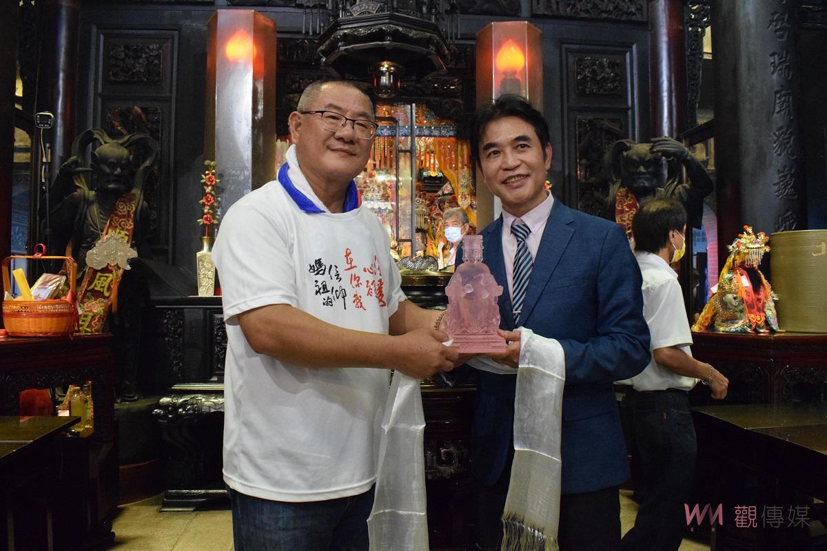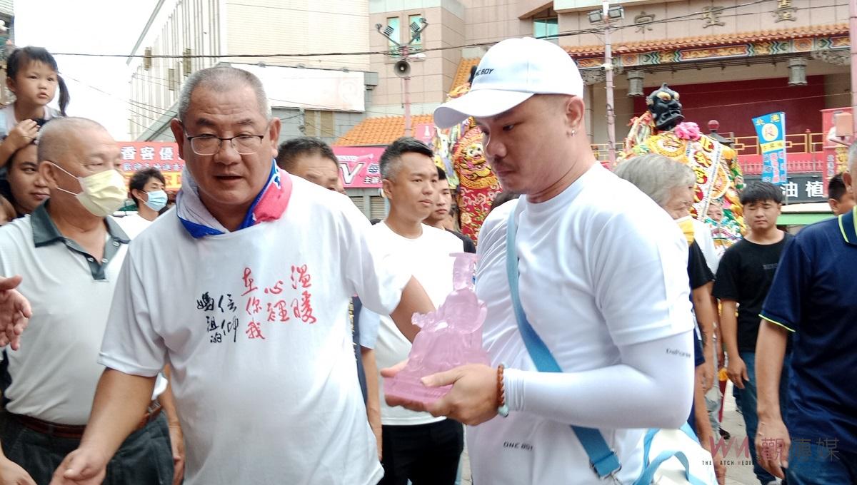 ▲首度曝光閨蜜媽祖手拿「龍珠如意寶」一起回北港朝天宮。