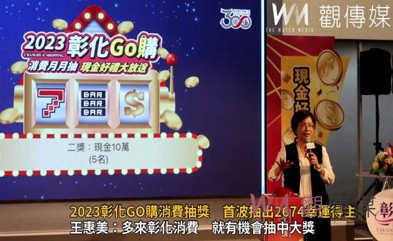 王惠美表示,彰化縣政府自7月1日到9月30日舉辦「2023彰化GO購」抽獎活動,今天在縣府中庭舉行第1次抽獎直播,共準備2335個現金紅包最大獎抽出5個10萬元,還有314個觀光旅遊獎及25個雲端發票獎。
