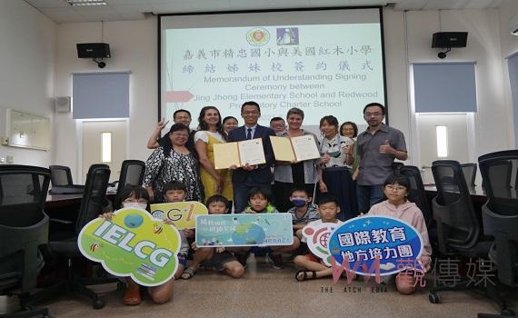 (觀傳媒嘉義新聞)【記者吳東林/嘉市報導】嘉義市政府與美國加州洪堡郡2022年8月8日簽署教育合作備忘錄,啟動兩地學校與師生交流互訪,精忠國小即與紅木特許小學(Red Wood Prep Charter School )展開為期一年的師生PBL共學和開發SDGs電子書教材,3日與兩校校長與親師生代表共同簽署『姊妹校暨國際教育合作備忘錄(MOU)』,是精忠國小第一所美國姊妹校,也是嘉義市國際教育培力團深耕國際教育2.0教育力培訓的成果,雙方校長即親師生對此都感到相當開心與感動。