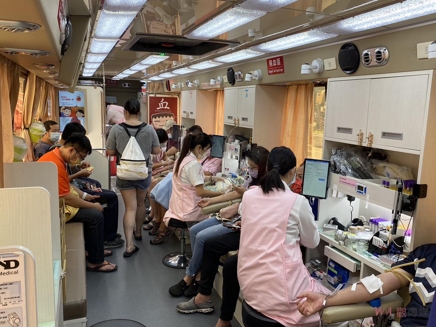 (觀傳媒彰化新聞)【記者陳雅芳/彰化報導】天氣炎熱影響民眾捐血意願,更遇到颱風及暑假,讓血庫存量更加吃緊,白沙屯天上聖母慈善發展協會今(13)日在彰化火車站前舉辦捐血活動,一早的降雨及停雨後超過30度的高溫,都阻擋不了民眾響應捐血活動的熱情,現場大排長龍,頂著悶熱高溫等待挽袖捐血,民眾愛心響應共有357袋熱血挹注血庫。