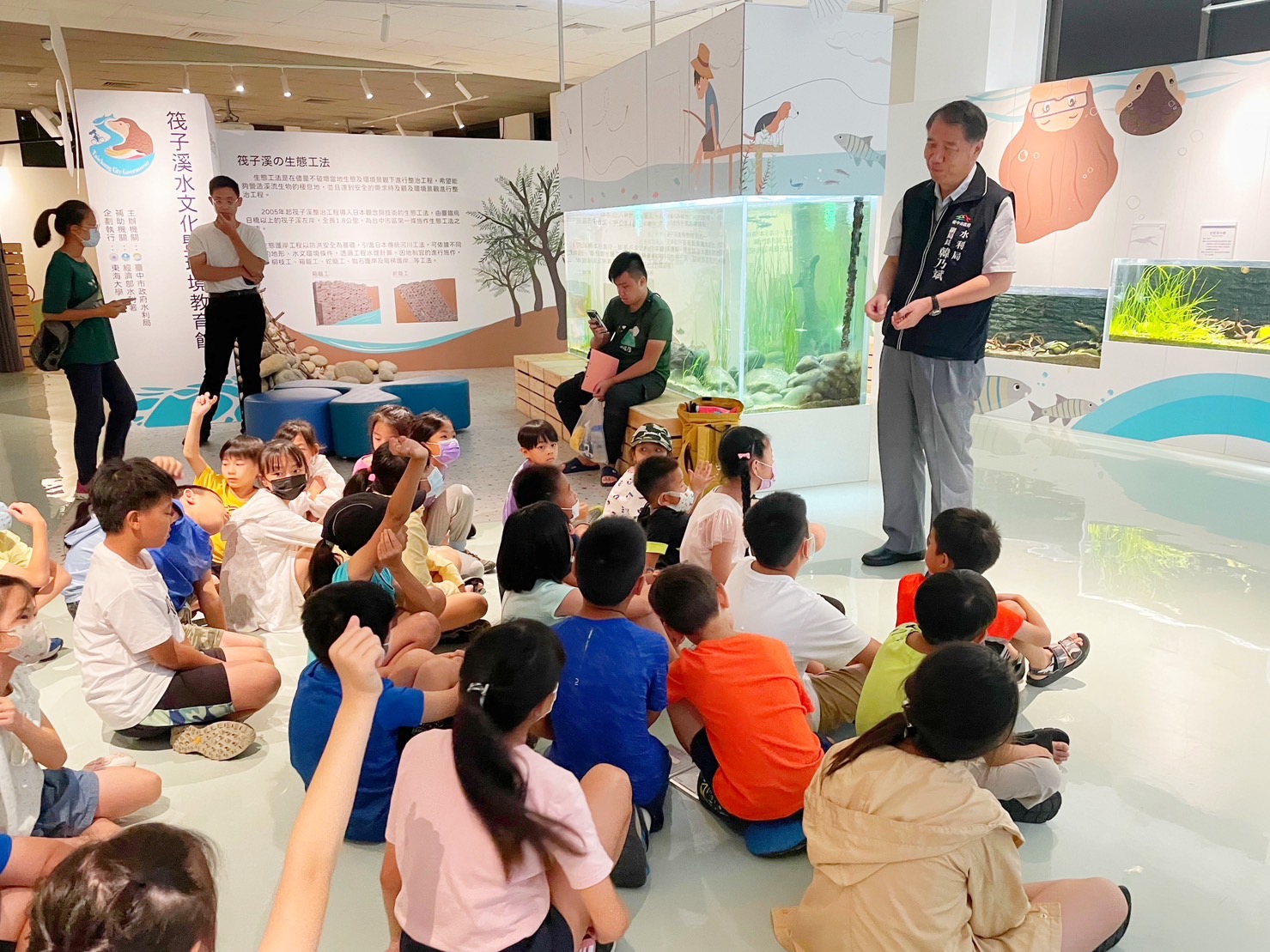 水利局表示,此次活動透過筏子溪水文化暨環境教育館的導覽人員針對館內鳥類、魚類及環境進行精采多元的生態解說,引領大、小朋友更深入了解家鄉河川的現況,並藉由現地觀察筏子溪水中生物及周遭動、植物,將筏子溪變成城市的生態教室,激發學員們對環境的反思,進而加強與溪流的連結。