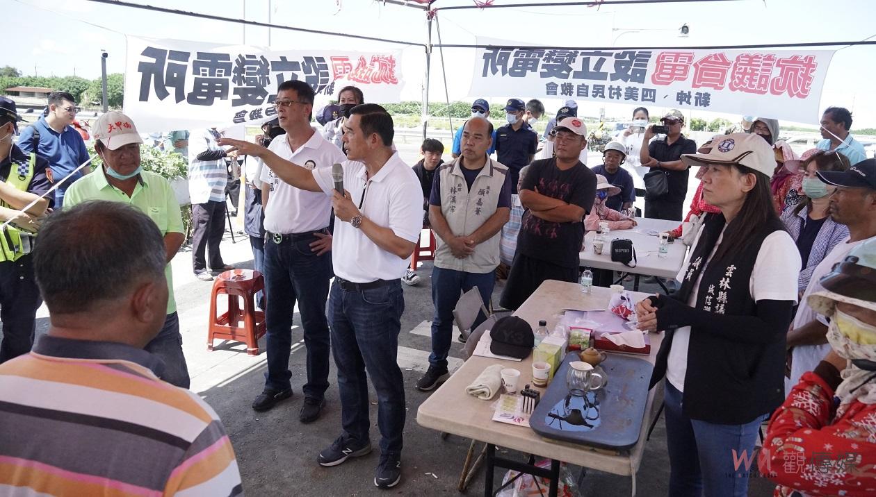 (觀傳媒雲林新聞)【記者蘇榮泉/雲林報導】在雲林縣東勢鄉鵝鄉橋旁集結由新坤村和四美村部落組成的「抗議台電設立變電所自救會」成員,21日上午發動抗議行動,要求台電重新考慮設立變電所的地點。當地東勢鄉鄉長張建福、縣議員蔡永富、蘇國瓏、吳蕙蘭等以及200位村民紛紛參與,表達了他們的關切與反對意見。