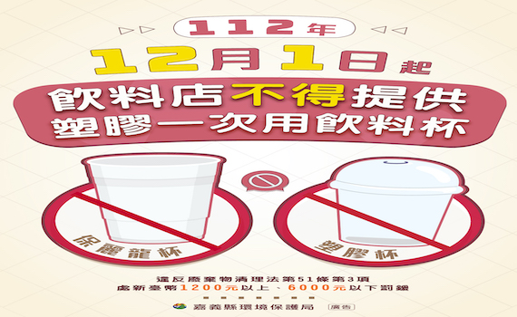 (觀傳媒嘉義新聞)【記者任禮清、陳惲朋/嘉義報導】嘉義縣政府依行政院環境保護署112年8月3日公告,轄內飲料店自今(112)年12月1日起,將不得再提供塑膠一次用飲料杯。