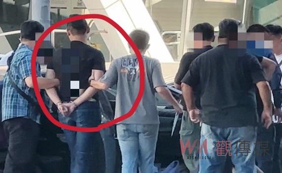 ▲多名便衣員警將2名犯嫌壓制上銬。