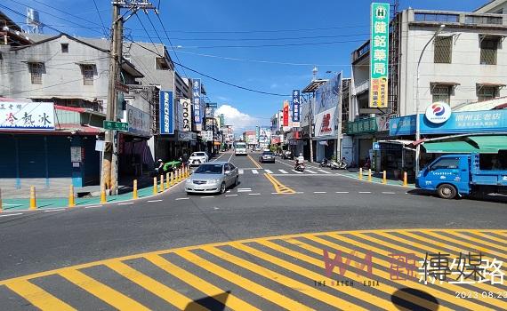 為改善圓環的交通亂象,圓環內原有2車道配置,整併為1混合車道,減少車輛變換車道所造成的交織行為,另藉由道路標線重繪,建立車輛停讓的秩序,提升行人和行車安全,而原本被車輛違停佔用的路肩空間,也透過設置標線型人行道,將人車空間進行區隔,串聯整體人行空間。經過圓環標線改造後,路口的煥然一新也引起社群網路的廣大回響,成為全新的拍照打卡熱點。