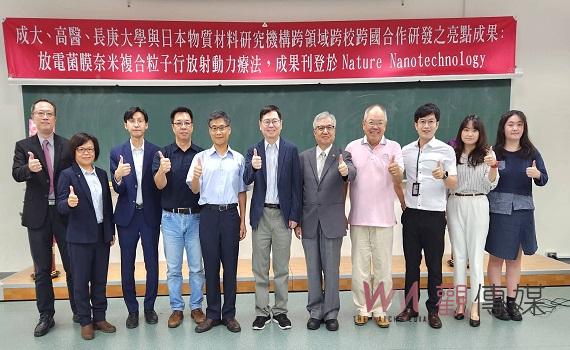 (觀傳媒台南新聞) 【記者陳彥霖/台南報導】國立成功大學、高雄醫學大學、長庚大學與日本物質材料研究機構,今(23)日於成大化學系舉辧「放電菌膜奈米複合粒子行放射動力療法」(Electroactive Membrane Fusion-liposome for Increased Electron Transfer to Enhance Radio-dynamic Therapy)研究成果刊登國際著名期刊 -《自然奈米技術》(Nature Nanotechnology)聯合發表會。