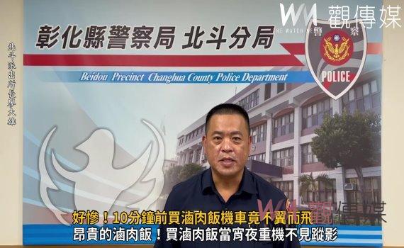 (觀傳媒彰化新聞)【記者陳雅芳/彰化報導】昂貴的滷肉飯!彰化縣北斗鎮謝姓男子因肚子餓,前往北斗鎮中華路知名滷肉飯店購買滷肉飯當宵夜,買完宵夜拎滷肉飯走出店門一看他剛騎來重機車竟不翼而飛,連忙撥打110求助,警方調閱店家錄影監視畫面後以車追人,於30分鐘內在500公尺外的撞球館前逮捕偷車賊,依竊盜罪嫌移送偵辦。