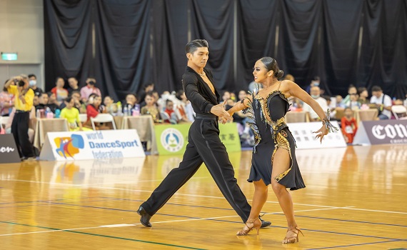 (觀傳媒南投新聞)【記者石振賢/南投報導】「2023日月潭舞蹈節全國運動舞蹈公開賽」27日在埔里國立暨南大學登場,300多位來自全國各地的各年齡層好手同場競技,其中地主隊選手林詠鉦、莊雅晴已於國家級比賽中連續奪下九座公開賽冠軍,此次更在公開賽中成功達成十連霸,精湛的舞姿讓觀賽民眾投以熱烈掌聲歡呼。
