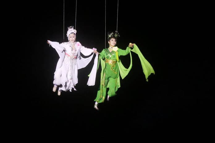 整齣戲動員超過300個演員、幕後技術人員,更以國家劇院級舞台燈光音響設備、6組直播大螢幕、6組水車,重現水漫金山壯觀場面,重頭戲一出場,水柱朝著觀眾席頭頂噴灑,台下歡呼聲此起彼落,白蛇、青蛇從10層樓的高空凌空飛越,將氣氛推向最高潮,直至謝幕,觀眾給予最熱烈的掌聲歡呼圓滿落幕。