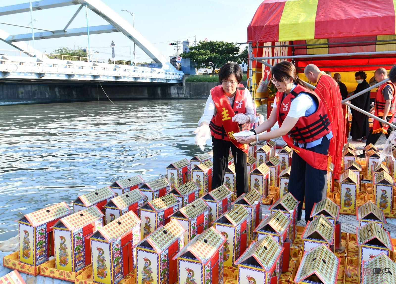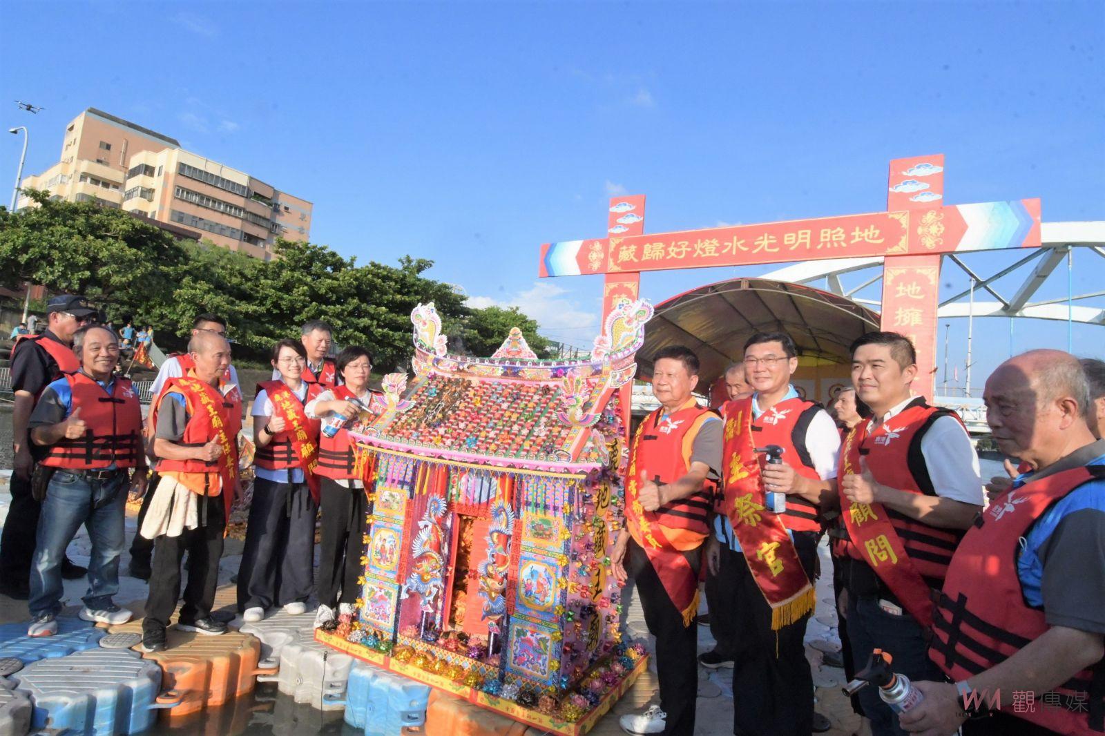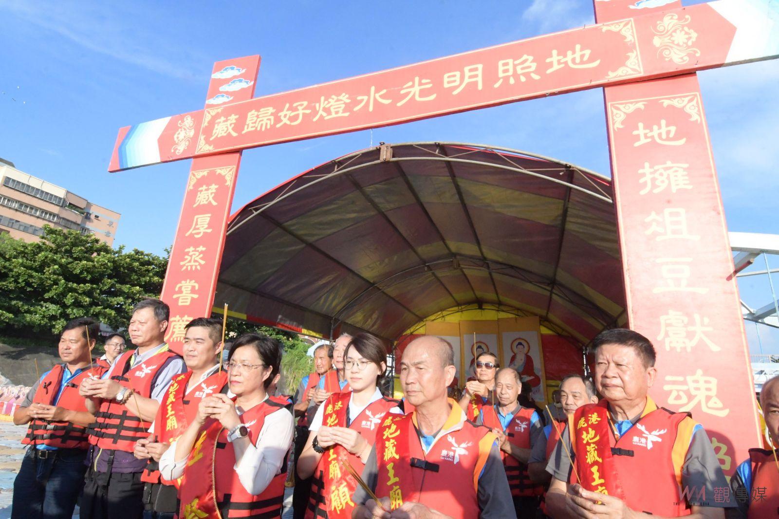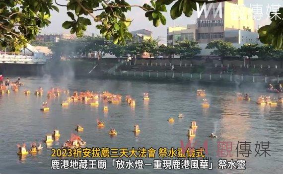 (觀傳媒彰化新聞)【記者陳雅芳/彰化報導】鹿港地藏王廟配合中元普渡,從28日到30日舉辦為期三天的「2023祈安拔薦三天大法會 祭水靈儀式、放水燈重現鹿港風華」,今(28)日傍晚在福鹿河濱公園舉辦祭水靈儀式,重現鹿港300年風華,彰化縣長王惠美、鹿港地藏王廟主任委員許森樹等人與會,祈求國泰民安、風調雨順、四時無災、闔家平安。