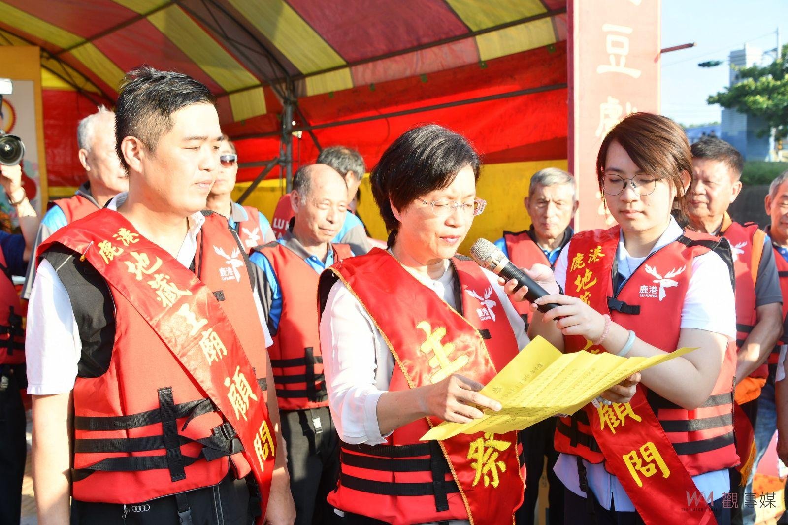 王惠美指出,今年邀請佛教非常有份量的上圓下明大法師來做法會,放水燈最主要目的是讓水中孤魂水靈能上岸,配合中元普渡,讓祂們可以離苦得樂,現今有越來越多的民眾一起參加放水燈的,特別感謝主委帶領的團隊,除了百年歷史活動外,也結合觀光,讓大家看到鹿港放水燈風華再現。