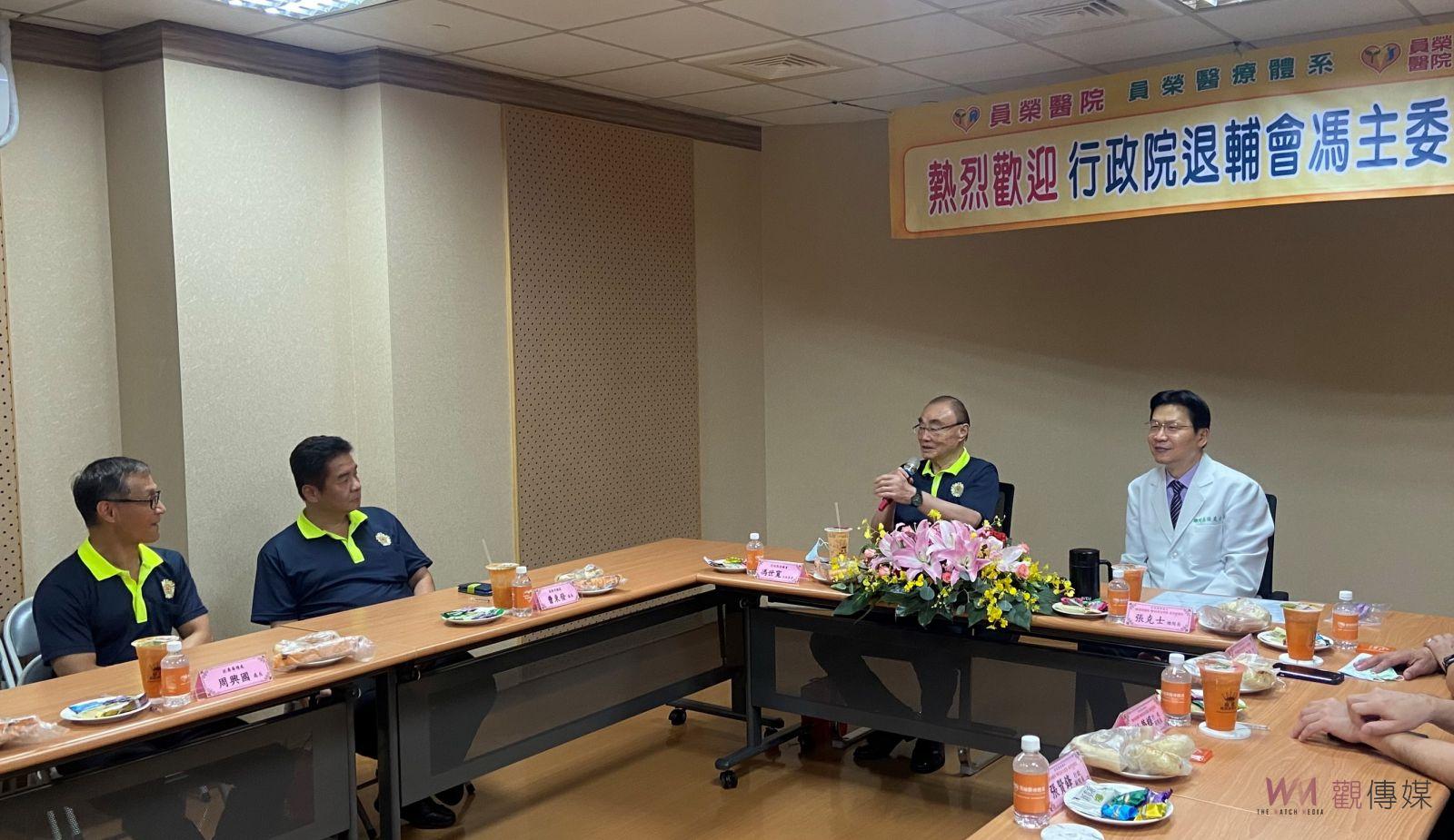 ▲退輔會主委馮世寬等人參訪員榮醫療體系,聽取員榮醫療體系總院長張克士簡報指示退輔會人員研擬學習員榮「一站式」醫療服務,以免榮民、榮眷要多次往返醫院。