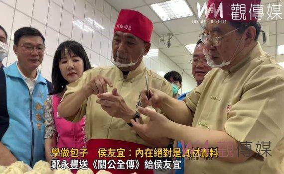 侯友宜說,雖然肉包外觀不漂亮,但是內餡很好吃,內在比較重要,絕對是真材實料」。侯還現場品嘗一顆肉包,直呼「好吃」,吃這一顆可以撐一整天。鄭永豐還送上彰化高中同學、台體大退休教授顏清洋所寫的《關公全傳》給侯友宜。