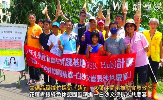 (觀傳媒彰化新聞)【記者陳雅芳/彰化報導】大葉大學休閒事業管理學系執行大學社會責任實踐基地種子計畫「花壇青銀綠色休憩園區精進-白沙文德長沙共慶宴」,結合食農教育與環境教育,帶領大朋友、小朋友跟隨筍農走入竹林,體驗採筍,認識地方特色。