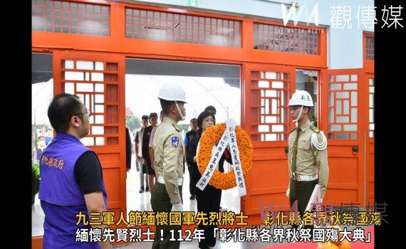 (觀傳媒彰化新聞)【記者陳雅芳/彰化報導】今(3)日是九三軍人節,為緬懷國軍先烈將士犧牲精神,彰化縣政府在彰化市忠烈祠、國軍彰化忠靈塔、彰化軍人忠靈祠等地舉行112年「彰化縣各界秋祭國殤大典」,彰化縣長王惠美、陸軍十軍團章指揮官等人與會祭祀,表達國軍官兵對先烈將士的感念與崇高敬意,場面莊嚴隆重且意義深遠。