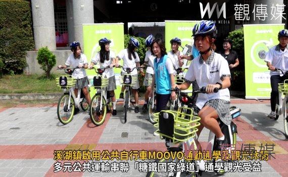 (觀傳媒彰化新聞)【記者陳雅芳/彰化報導】彰化縣公共自行車MOOVO進駐溪湖鎮,今(5)日在國立溪湖高中舉行啟用典禮,彰化縣長王惠美說,這次在溪湖啟用5站,溪州1站,包括試營運的糖鐵國家綠道串連溪湖糖廠站及溪州森林公園站,一併啟用,目前全鎮放置50輛公共自行車,即日起遊客與學生可騎乘往來車站、學校、溪湖糖廠之間,未來視需求增加車輛和站點。