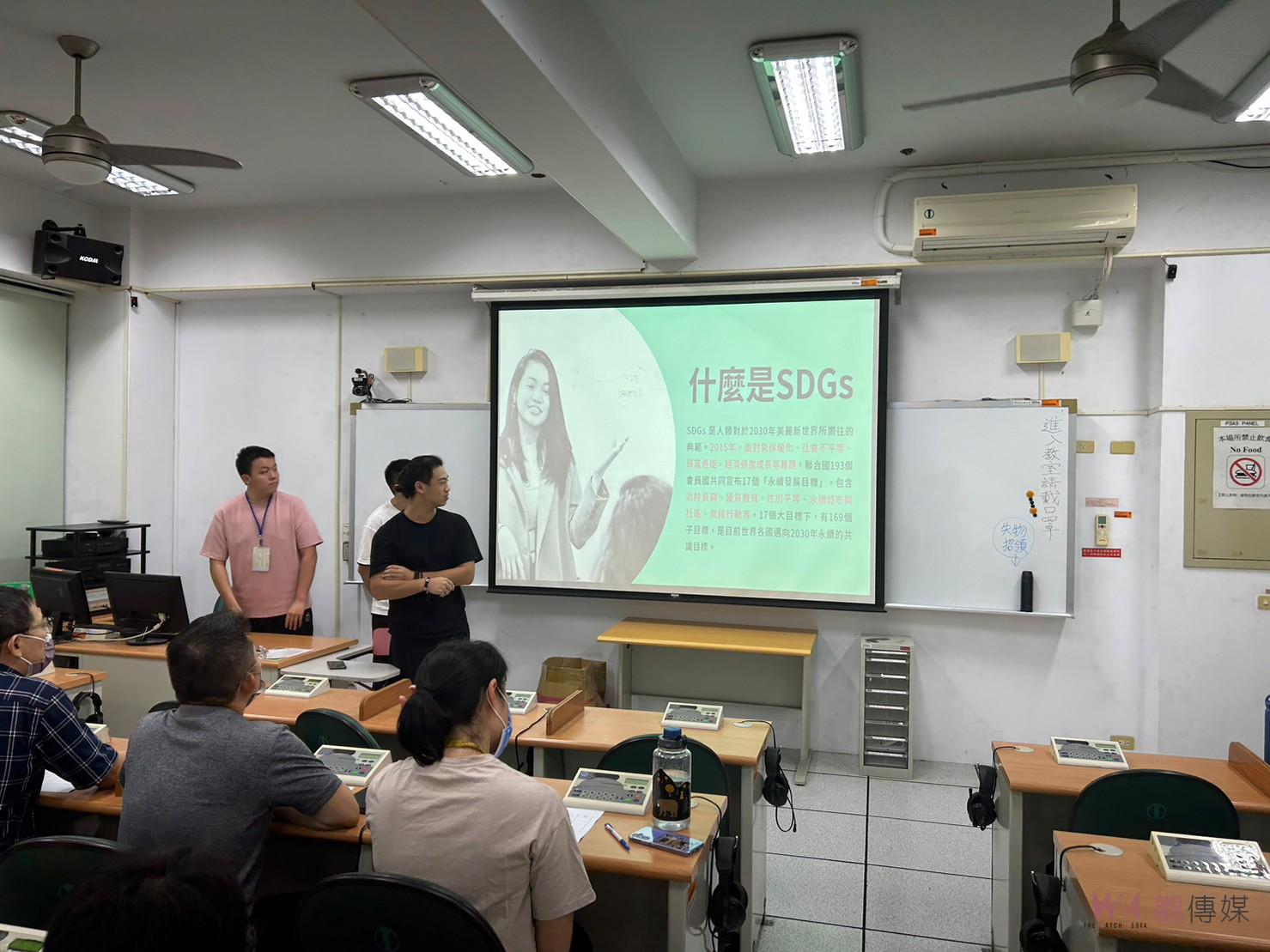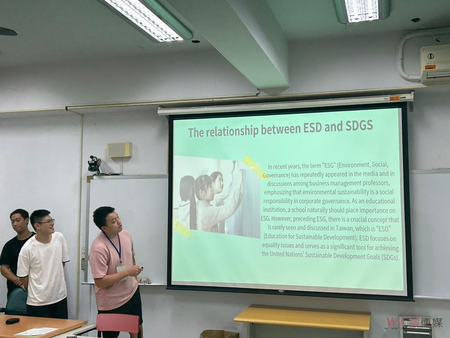 ▲今年活動也加入YouTube文案撰寫、配音和拍攝剪輯等內容,經過英語營學習,同學是學現賣進行簡報。