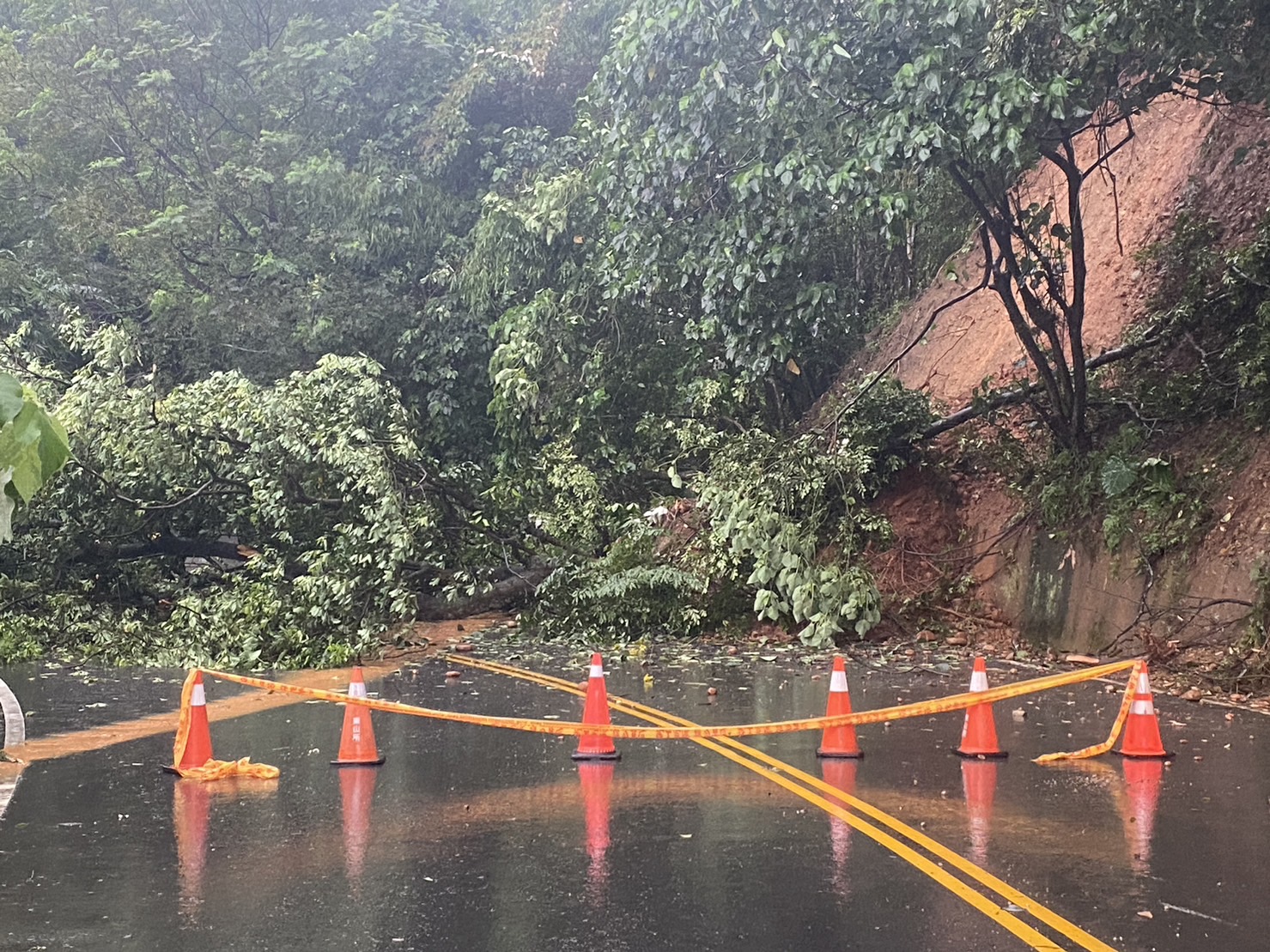 ▲強降雨狂襲!員林市員草路32公里處路邊邊坡滑動,路倒塌及土石滑落,導致員草路雙向交通中斷。