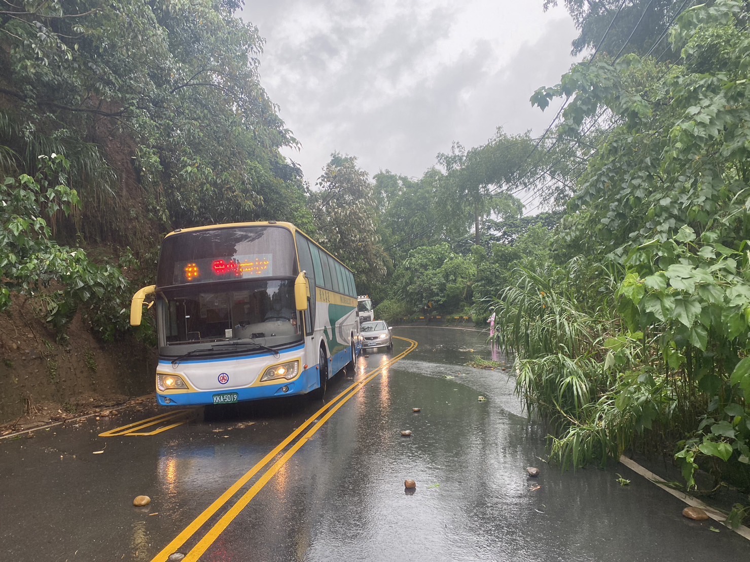 事隔不到一天,今(6)日下午員林又開始下雨,造成員草路旁多處山坡地,不敵連日豪雨土石鬆動,落石不斷,連山坡上的樹木都連根拔起,至少有3班客運延誤,市公所派員協助清除,警消協助指揮交通。
