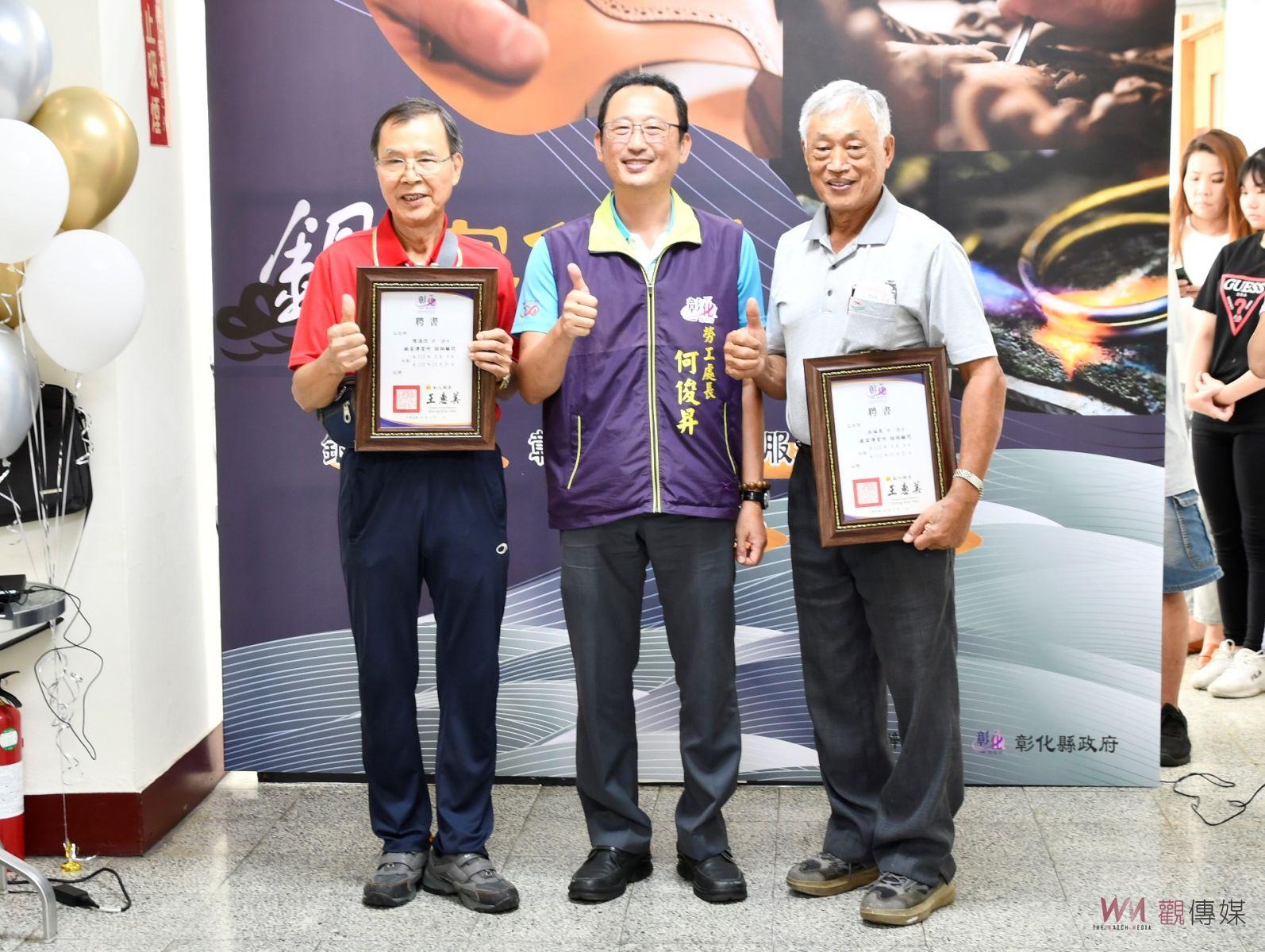 (觀傳媒彰化新聞)【記者陳雅芳/彰化報導】為了不讓「技藝」失傳,彰化縣政府成立「銀家傳習所」,今(6)日由勞工處長何俊昇頒發聘書,聘請洪福來及陳進烈兩位優秀銀髮職人擔任顧問,邀請55歲以上、具各職類專業技能「銀髮人才」,加入技藝傳習行列,讓各項嚴重缺工的職業技藝能進行世代提昇和傳承。