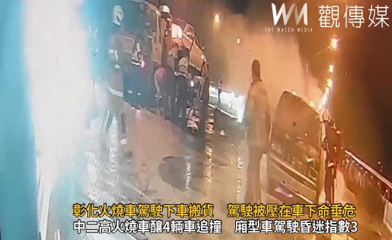 (觀傳媒彰化新聞)【記者陳雅芳/彰化報導】保命卡要緊!國道3號南下彰化系統路段,昨(6)日晚間8時許發生一起嚴重車禍事故!一輛廂型車火燒車後,駕駛為搶搬載運貨品時,卻慘遭後方轎車撞擊並受困車底,經彰化縣消防局人員救出,送到彰化基督教醫院前已無呼吸心跳,但經彰基搶救後,目前狀況血壓、心跳穩定,不過昏迷指數只有3分,插管在加護病房治療中。