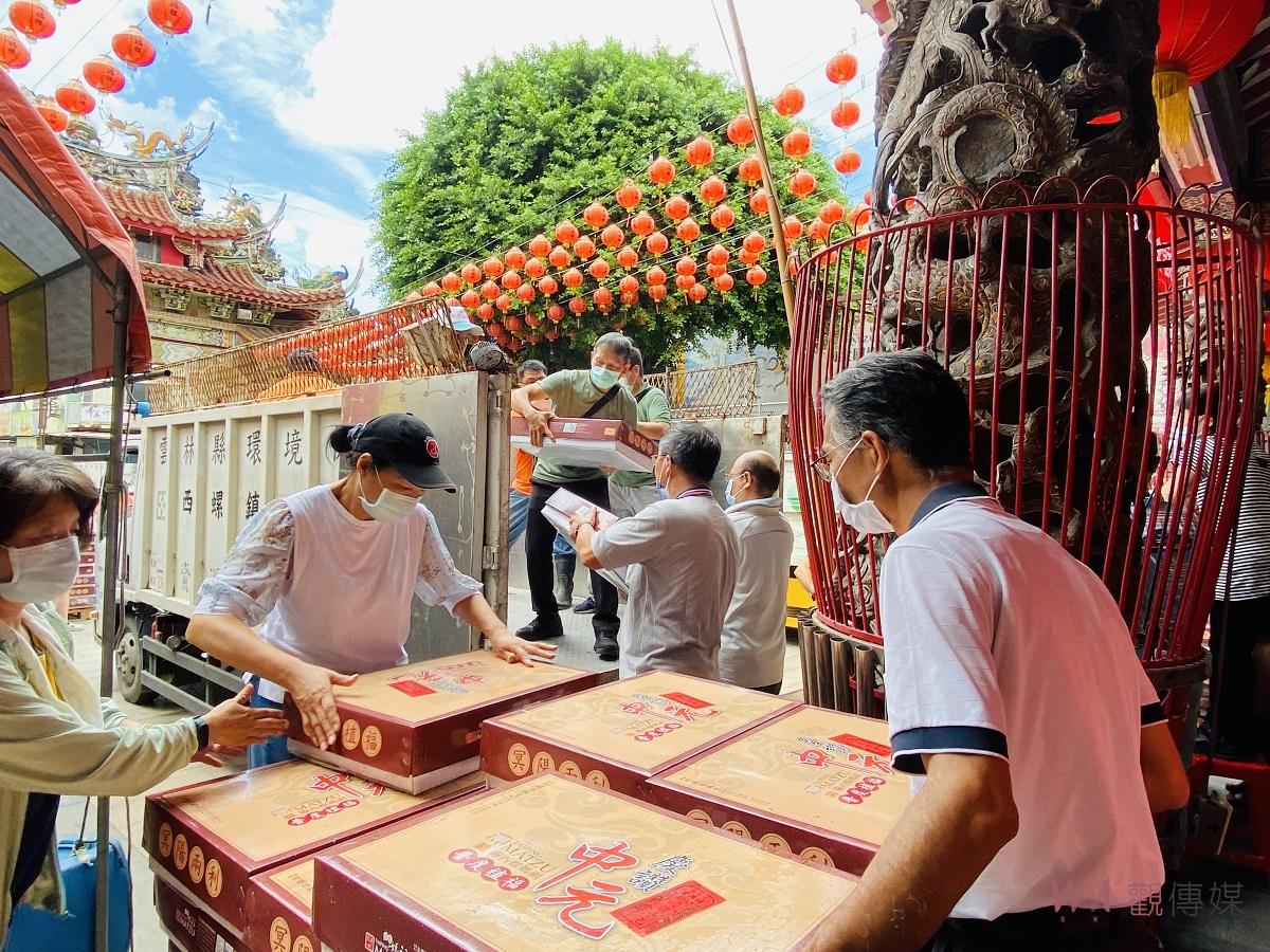 ▲西螺福興宮慶讚中元,近20年來連年捐贈普桌物資做公益。