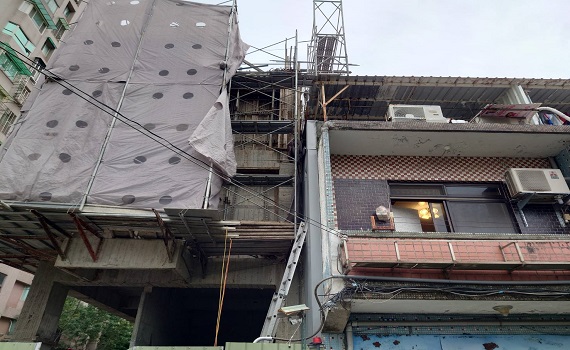 工務局表示,位於三重大同南路一棟屋主自行改建未開挖地下室的地上5層樓建案,於7日在進行3樓混凝土澆置時,導致隔壁鄰房牆壁受損及3樓違建輕鋼架坍塌,市府於接獲通報後,第一時間立即會同專業技師公會人員前往現場勘查,針對工地未做妥安全防護措施部分,已依建築法規定勒令停工。其中受損違建部分不得重建,但工地仍應改善完成並賠償受損戶的財產損失後,始得復工。